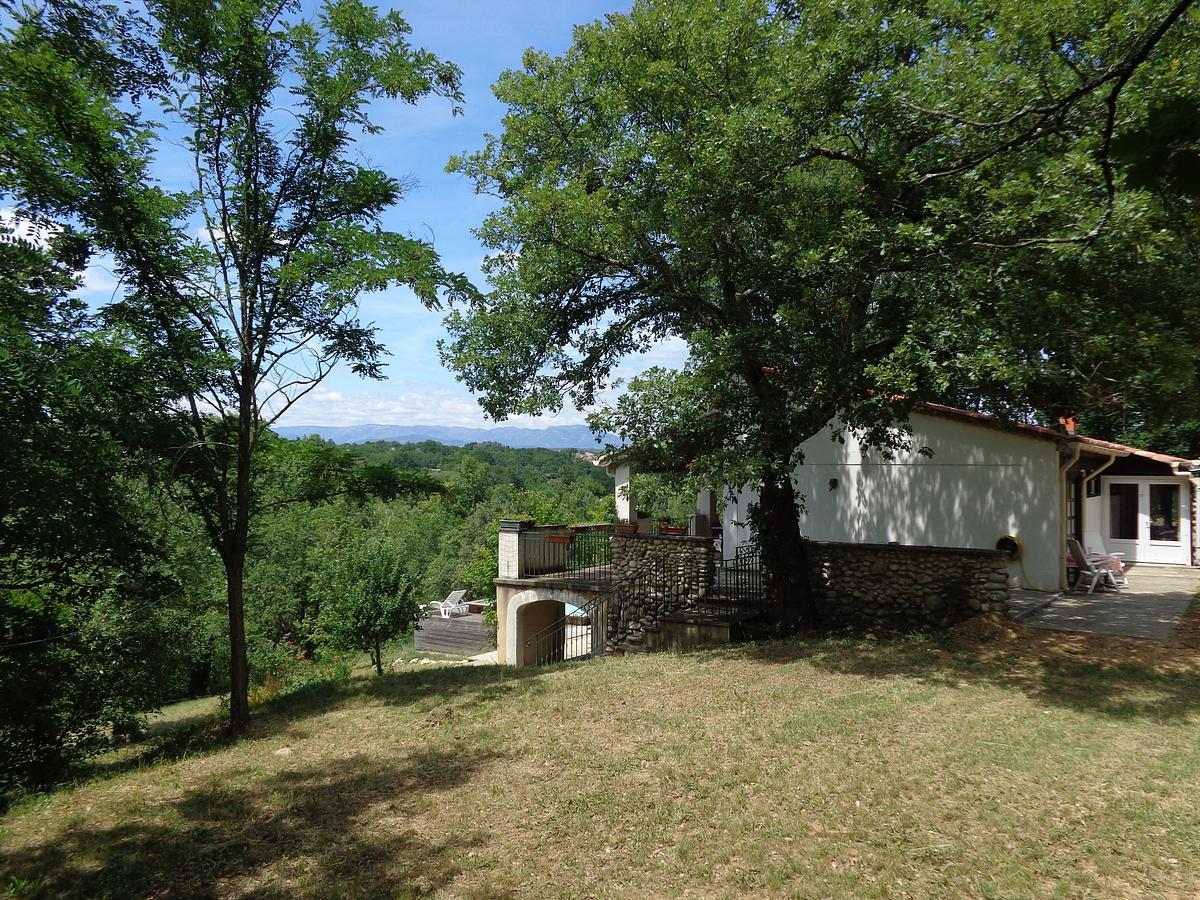 Vanuit het huis, met grote veranda op eerste verdieping, heeft u een fantastisch uitzicht over de tuin, zwembad en de omgeving, wat u zeker geen moment zal vervelen! De woning is gebouwd tegen een heuvel en heeft hierdoor verschillende niveaus.
